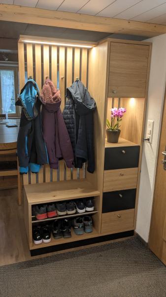 Unser Lehrling Janis Jordi schloss mit der überragenden Schlussnote von 5.7 ab. Dazu gratulieren wir ihm von Herzen. Wir freuen uns, dass Janis weiterhin in unserer Werkstatt schreinern wird. Die Garderobe aus Eichenholz entwarf und fertigte Janis als Individuelle Prüfungsarbeit. Toll gemacht Janis!